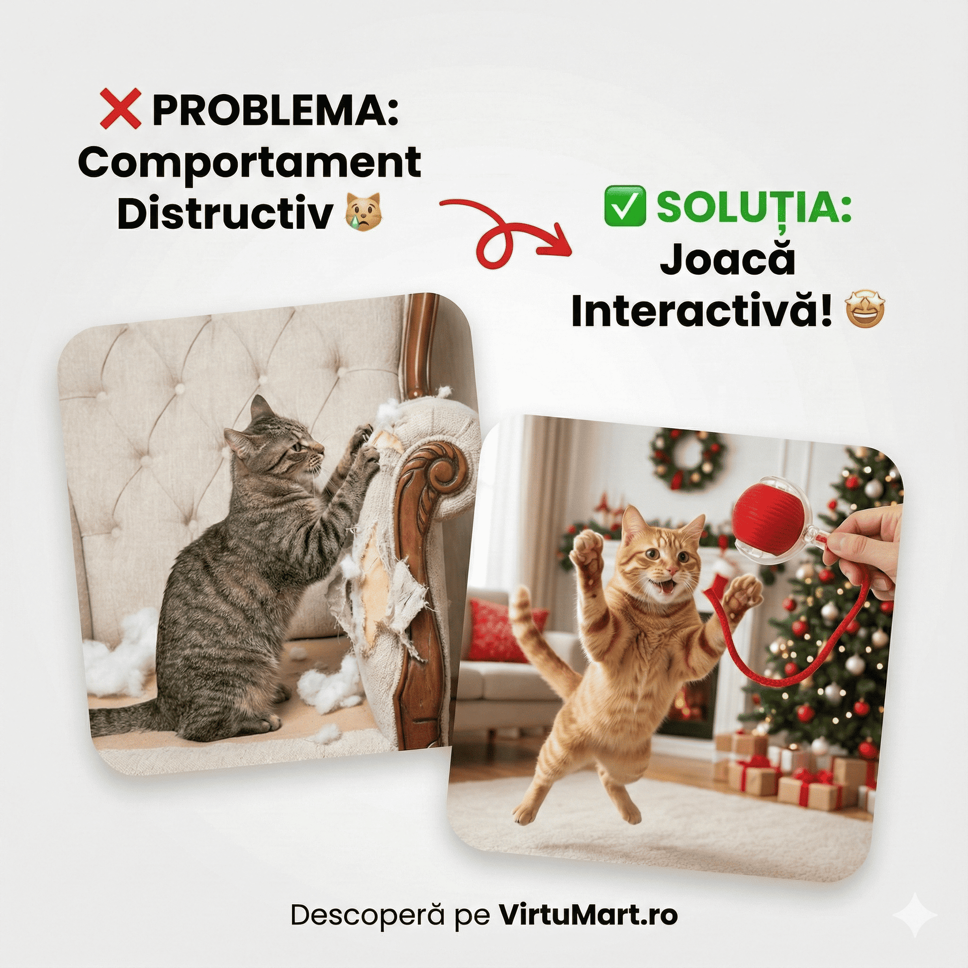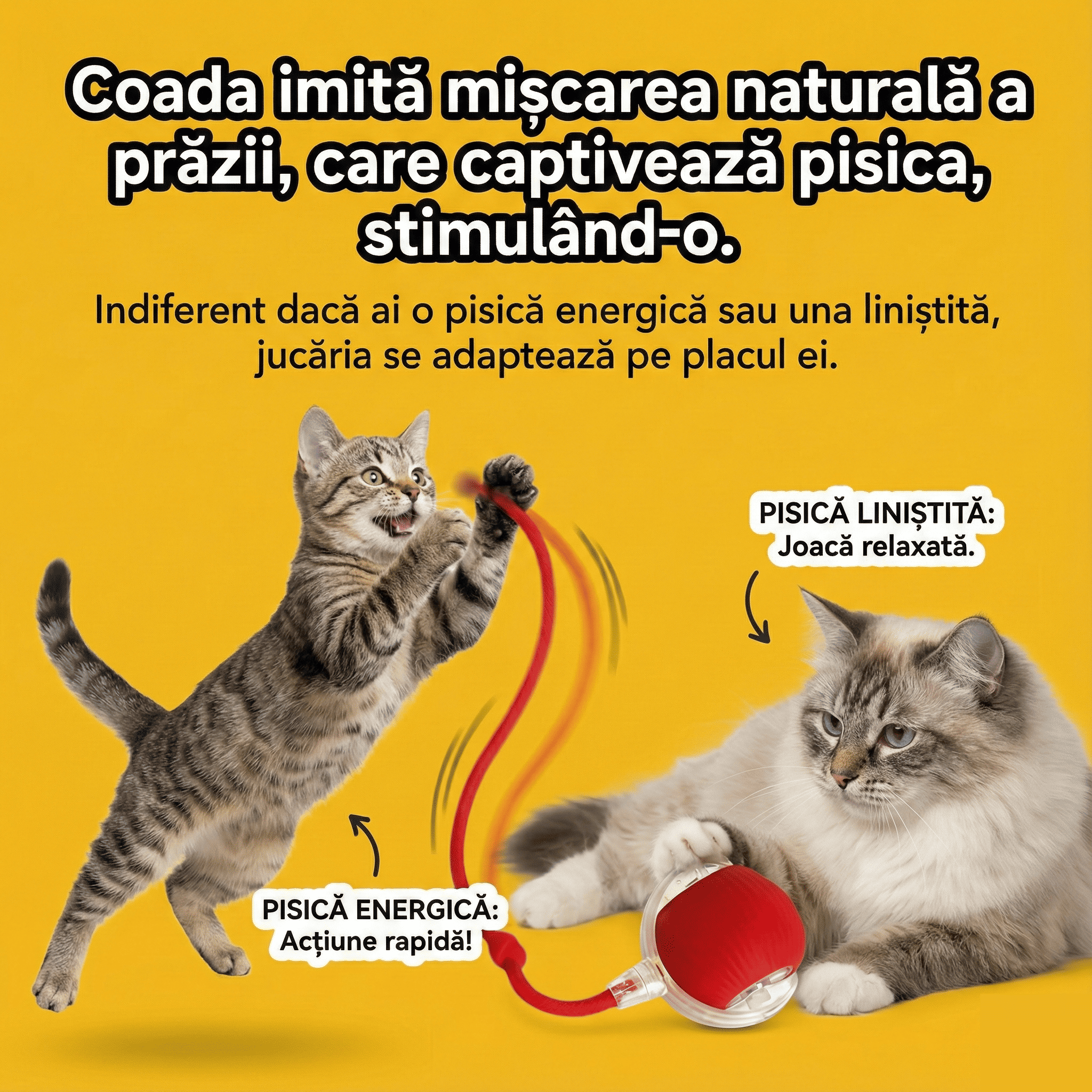 - 1 x Jucărie inteligentă cu minge rotativă automată și coadă artificială